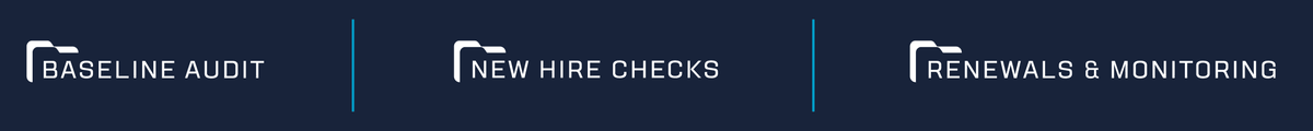 Ideal when you just need specific compliance gaps filled for new hires, contractors or existing staff, without setting up a full program.B | EMPLOYMENT BACKGROUND SCREENING